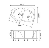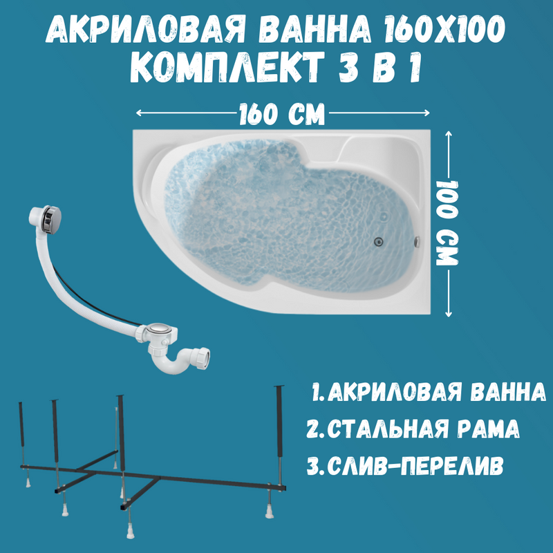 - Комплектация: Акриловая ванна 1MarKa Diana R Стандарт 2+ 160x100 см, угловая, правая, встраиваемая, белая, асимметричная, с каркас