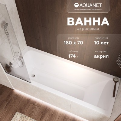 - Комплектация: Акриловая ванна 1MarKa Elegance Стандарт 1 120x70 см, встраиваемая, белая, на ножках, со сливом-переливом