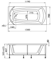 - Комплектация: Акриловая ванна 1MarKa Elegance Стандарт 2 130x70 см, встраиваемая, белая, с каркасом, со сливом-переливом