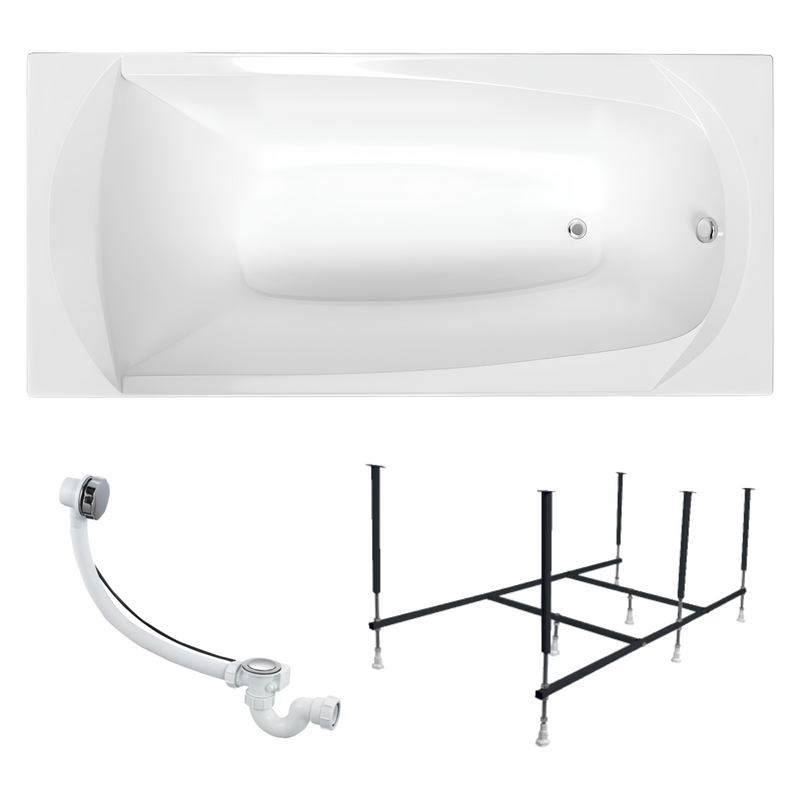 - Комплектация: Акриловая ванна 1MarKa Elegance Стандарт 2 165x70 см, встраиваемая, белая, с каркасом, со сливом-переливом