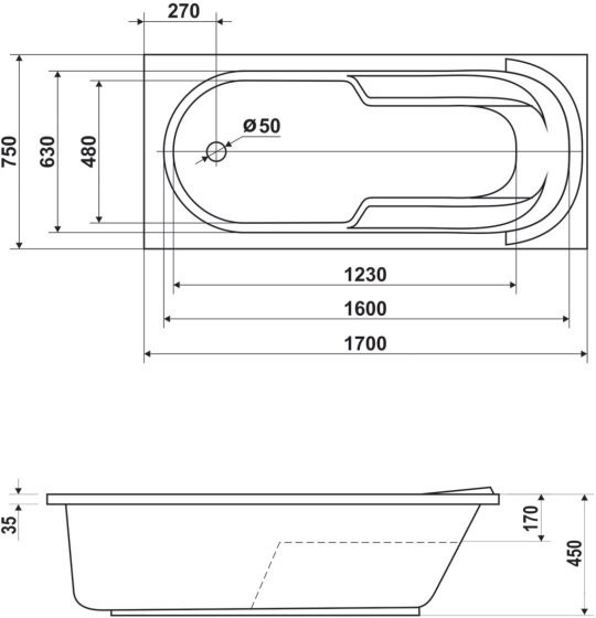 - Диаметр слива ванны, см: 5.2 см
