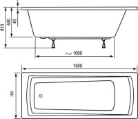 - Комплектация: Акриловая ванна Ravak Domino Plus C641R00000 без опоры 150x70 см, пристенная, белая; Ножки для ванны Ravak Classic