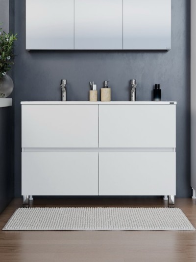 Мебель для ванной комнаты СаНта Марс 120 напольная, с ящиками, глянцевая белая