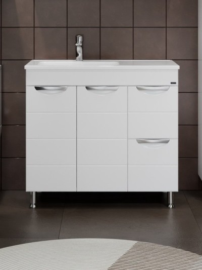 Тумба с раковиной СаНта Родос 90 напольная, с ящиками и дверками, глянцевая б...