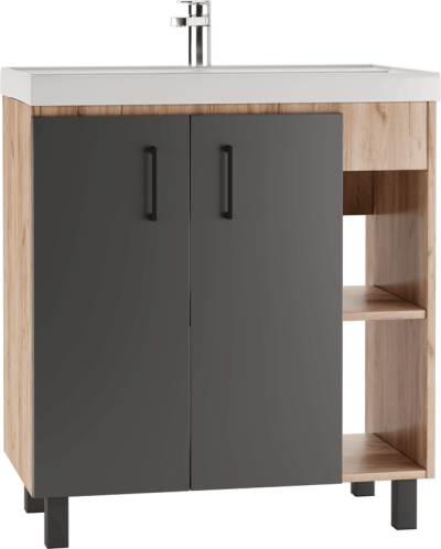 Тумба с раковиной Домино Craft 80 дуб вотан, графит