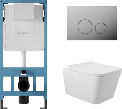 Комплект Aqueduto Ovo AQDS028 безободковый, с микролифтом, кнопка смыва белая