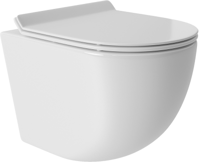 Унитаз подвесной Aqueduto Ovo OVO0110 безободковый, с микролифтом, белый глян...