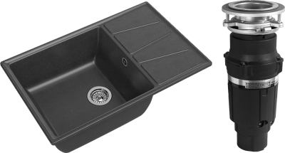 Комплект Мойка GranFest Level LV-760 K черная + Измельчитель KUCHENSTERN Muhle