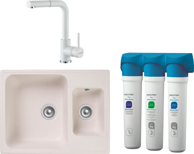 Комплект Мойка кухонная GranFest Quarz Z09 белый + Смеситель Paulmark Kassel ...