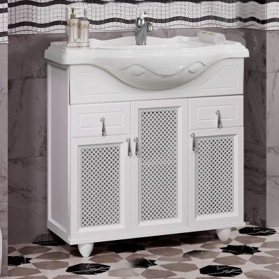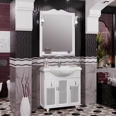 Мебель для ванной комнаты Opadiris Тибет 85 с декоративной решеткой, белая ма...