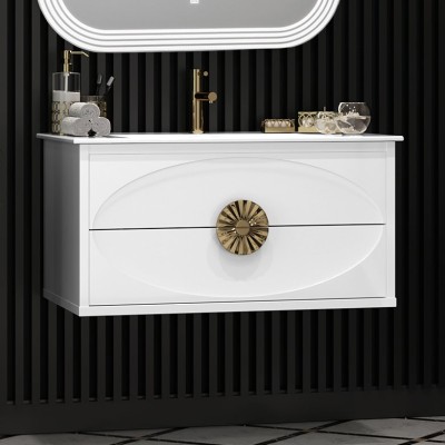 Тумба с раковиной Opadiris Ибица 90 подвесная, фурнитура золото
