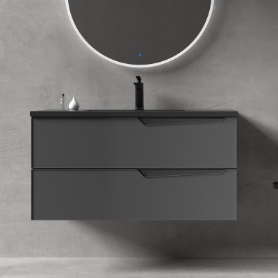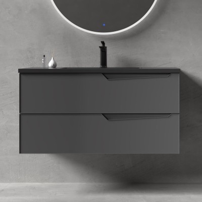 Тумба с раковиной Parly Rhea 100 подвесная, 2 ящика, матовая черная