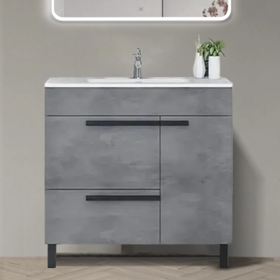 Тумба с раковиной Parly Gill 80 напольная, 1 ящик, 2 дверцы, цементно-серая