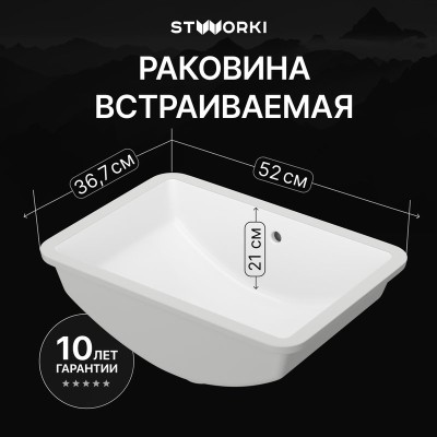 Раковина встраиваемая снизу STWORKI Копенгаген S42410WH 52 глянцевая белая, п...