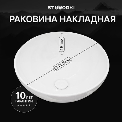 Накладная раковина STWORKI Карлстад S35410WH 42 глянцевая белая, круглая