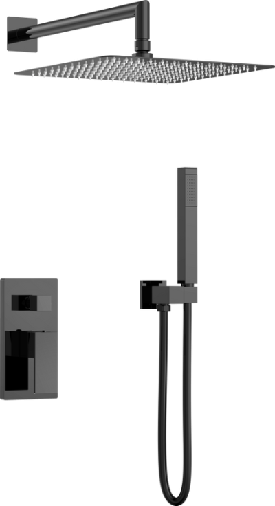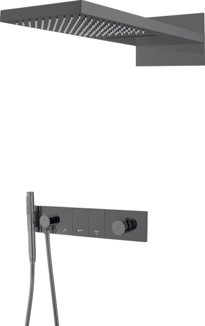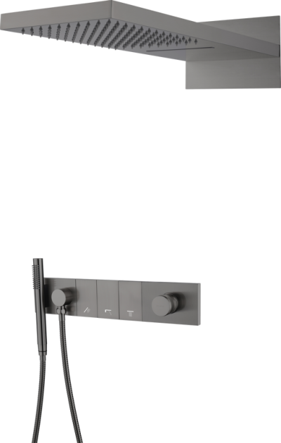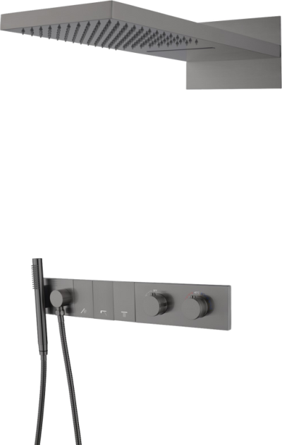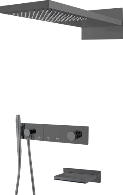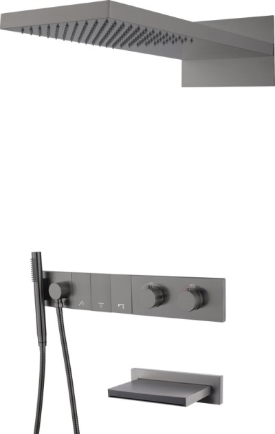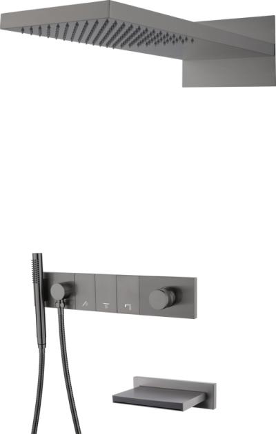 Душевой комплект Boheme Qubic 474-3-SGM С ВНУТРЕННЕЙ ЧАСТЬЮ, shine gun metal