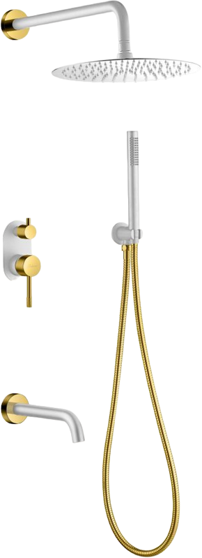 Душевой комплект Boheme Uno 464-2-WG С ВНУТРЕННЕЙ ЧАСТЬЮ, белый матовый, золото