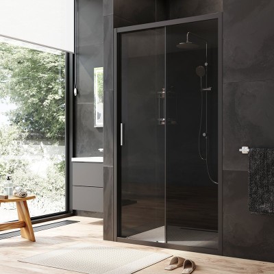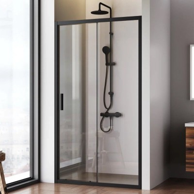 Душевая дверь в нишу Cezares Slider B 1 100/110 BR Nero профиль черный, стекл...