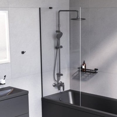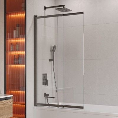 Шторка на ванну Cezares Slider VF-11-90/150-C-GM профиль оружейная сталь, сте...