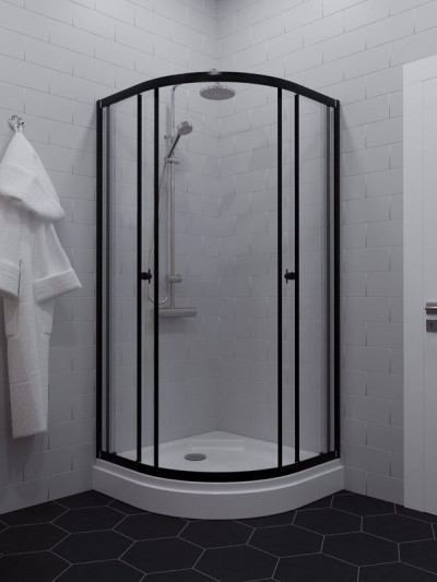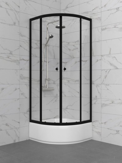 Душевой уголок Triton Фикс 90х90 см, с поддоном, профиль черный, стекло вельвет