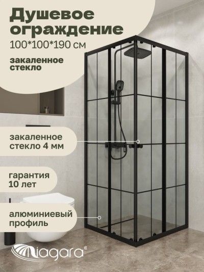 Душевая перегородка Niagara Eco NG-1010-14QBLACK (100x100x190 см)