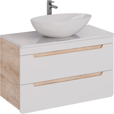 Тумба под раковину со столешницей Lemark Olivia 100 дуб кантри, белая глянцевая
