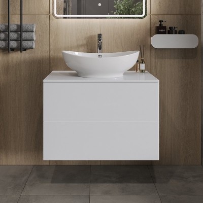 Тумба под раковину со столешницей Orange Line 80 подвесная, 2 ящика, матовая ...