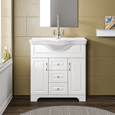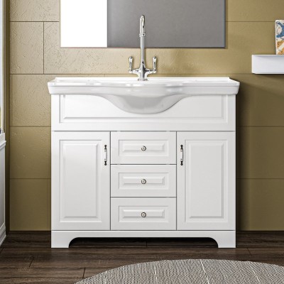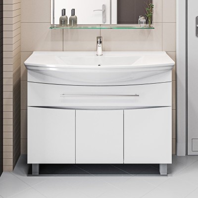 Тумба с раковиной 1MarKa Lina classic new 105 белый глянец, с дверками и ящиком