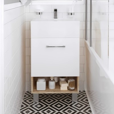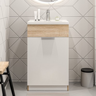 Тумба с раковиной 1MarKa Revo 50Н белая, дуб сонома