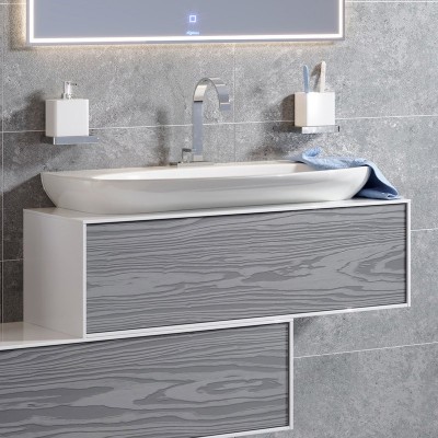 Тумба с раковиной Aqwella 5 stars Mobi 120 белая, бетон светлый