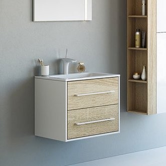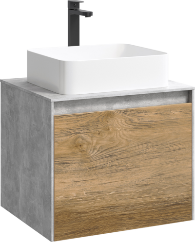 Тумба с раковиной Aqwella 5 stars Mobi 60 бетон светлый, дуб балтийский