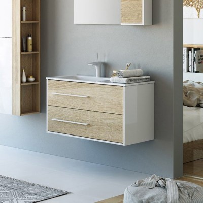 Тумба с раковиной Aqwella 5 stars Mobi 120 белая, дуб балтийский