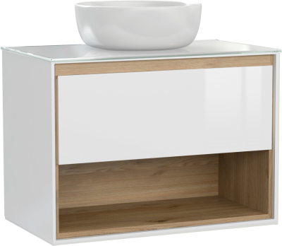 Тумба с раковиной Cersanit Louna 80 со столешницей и раковиной Moduo 55 Leaf