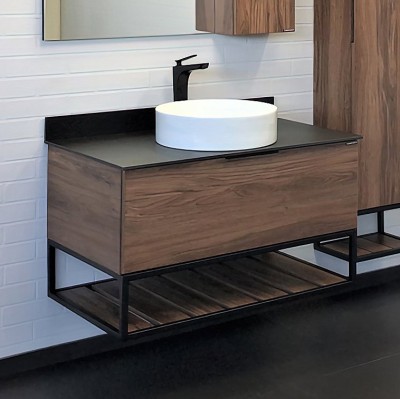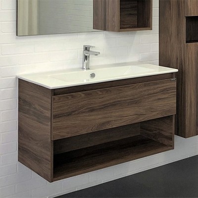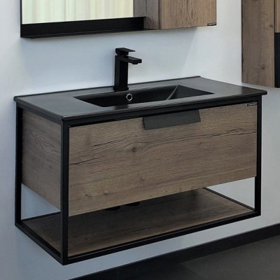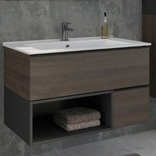 Тумба с раковиной Comforty Франкфурт 90 подвесная, дуб шоколадно-коричневый