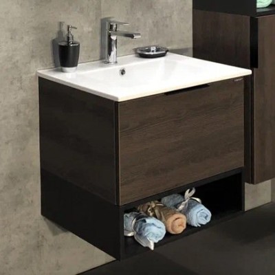 Тумба с раковиной Comforty Штутгарт 60 подвесная, дуб тёмно-коричневый