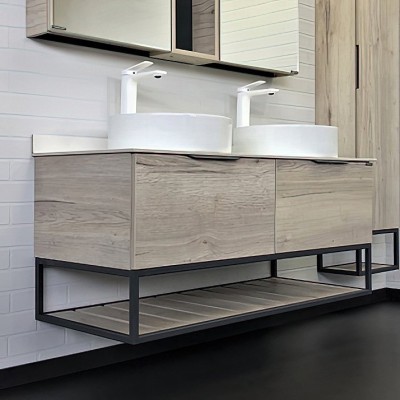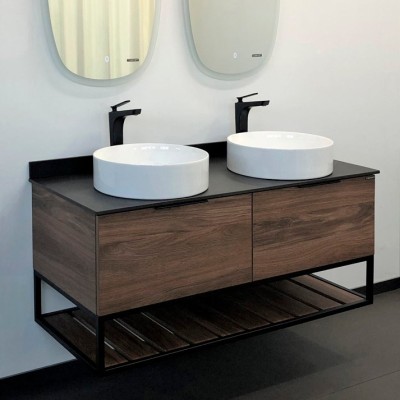 Тумба с раковиной Comforty Порто 120 две раковины, подвесная, дуб дымчатый