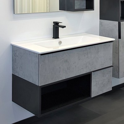 Тумба с раковиной Comforty Эдинбург 60 подвесная, бетон светлый, раковина 905...
