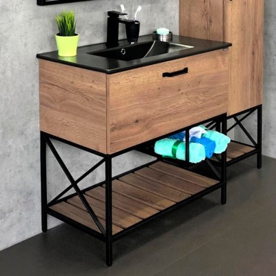 Тумба с раковиной Comforty Бредфорд 90 дуб темный