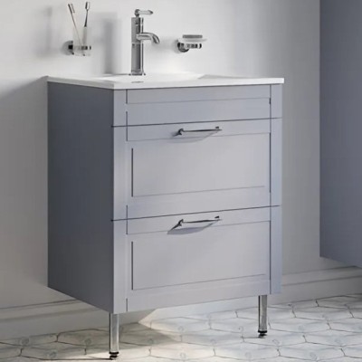 Тумба с раковиной IDDIS Oxford 60 напольная, светло-серая, раковина 0136000i28