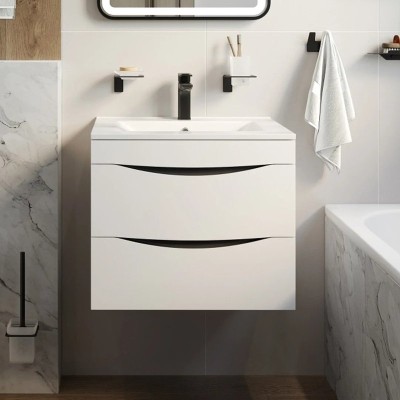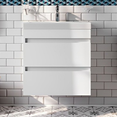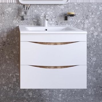 Тумба с раковиной IDDIS Bild 60 подвесная, 2 ящика, белая