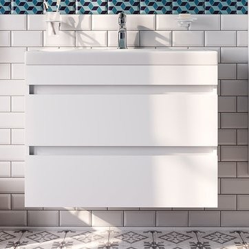 Тумба с раковиной IDDIS Bild 80 подвесная, 2 ящика, белая