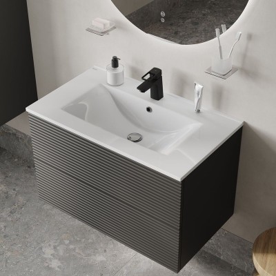 Тумба с раковиной IDDIS Bild 80 подвесная, 2 ящика, темно-серая