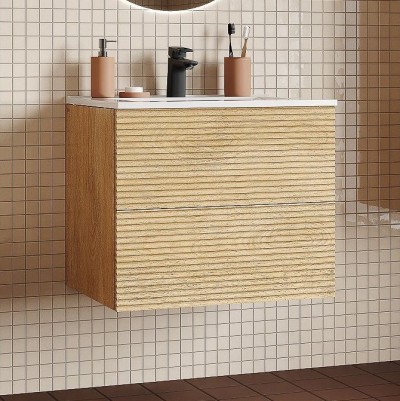 Тумба с раковиной IDDIS Bild 60 подвесная, 2 ящика, дуб светлый