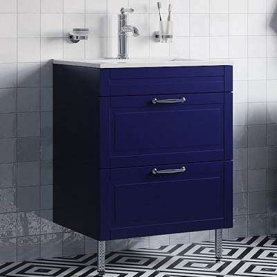 Тумба с раковиной IDDIS Oxford 60 напольная, синяя, раковина 0136000i28