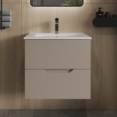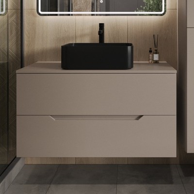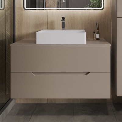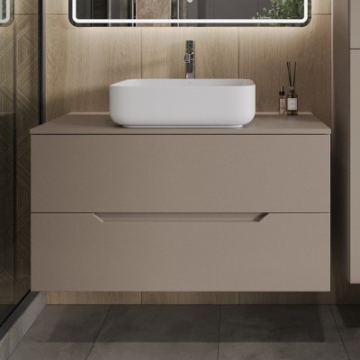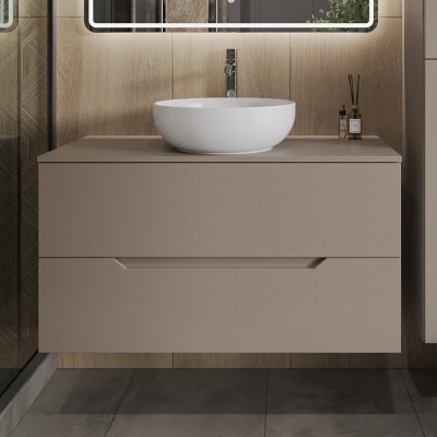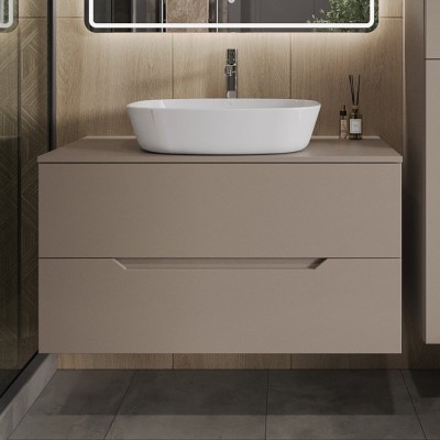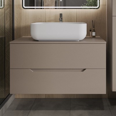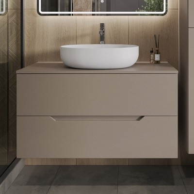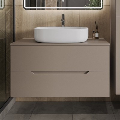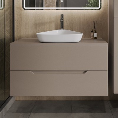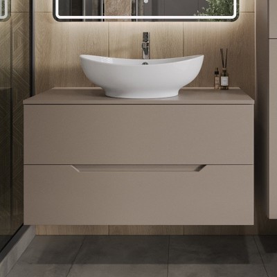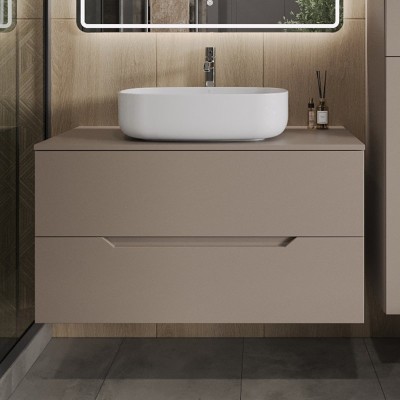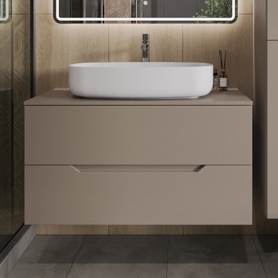 Тумба с раковиной Orange Line 100 подвесная, 2 ящика, матовый латте с раковин...