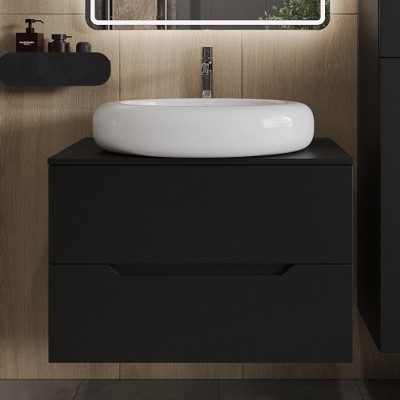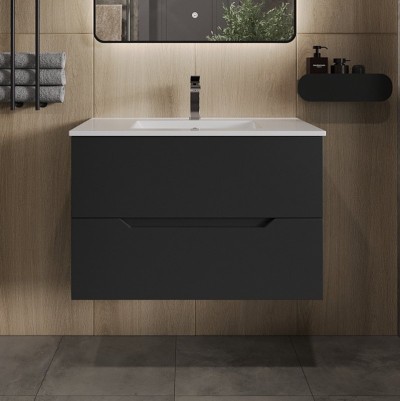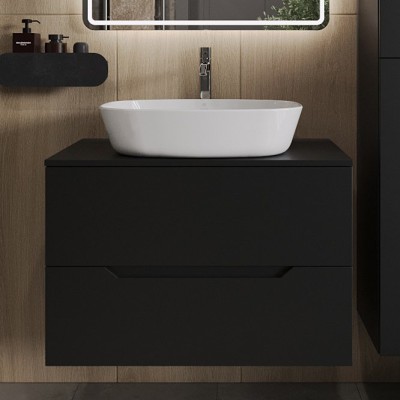 Тумба с раковиной Orange Line 80 подвесная, 2 ящика, матовая черная с раковин...