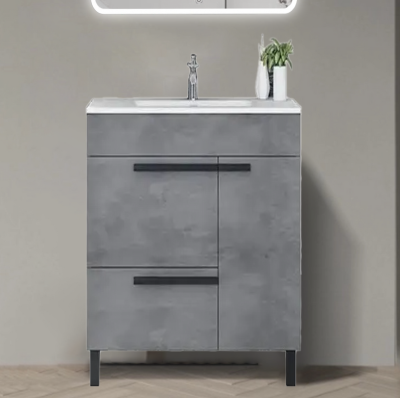 Тумба с раковиной Parly Gill 70 напольная, 1 ящик, 2 дверцы, цементно-серая