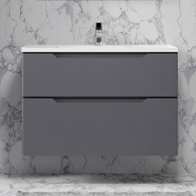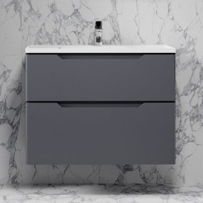Тумба с раковиной Raval Welto 80 подвесная, 2 ящика, светло-серая