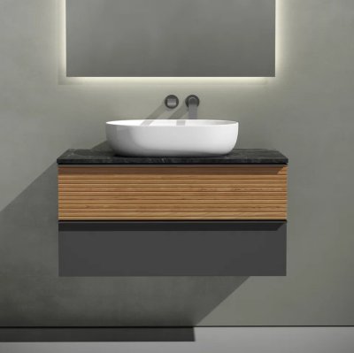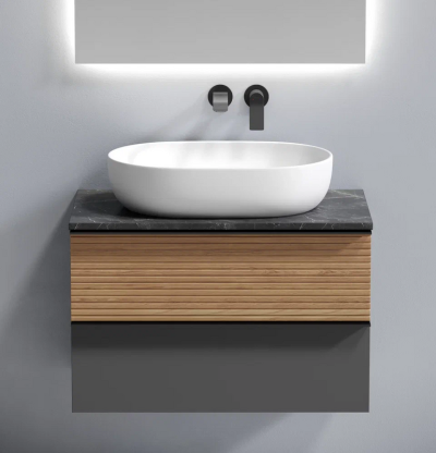 Тумба с раковиной Sancos Delta 80 см, дуб красный, графит, столешница черный ...