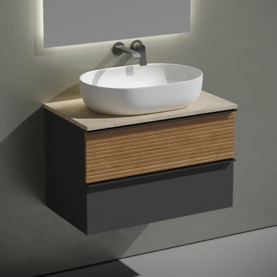 Тумба с раковиной Sancos Delta 80 см, дуб красный, графит, столешница бежевая...
